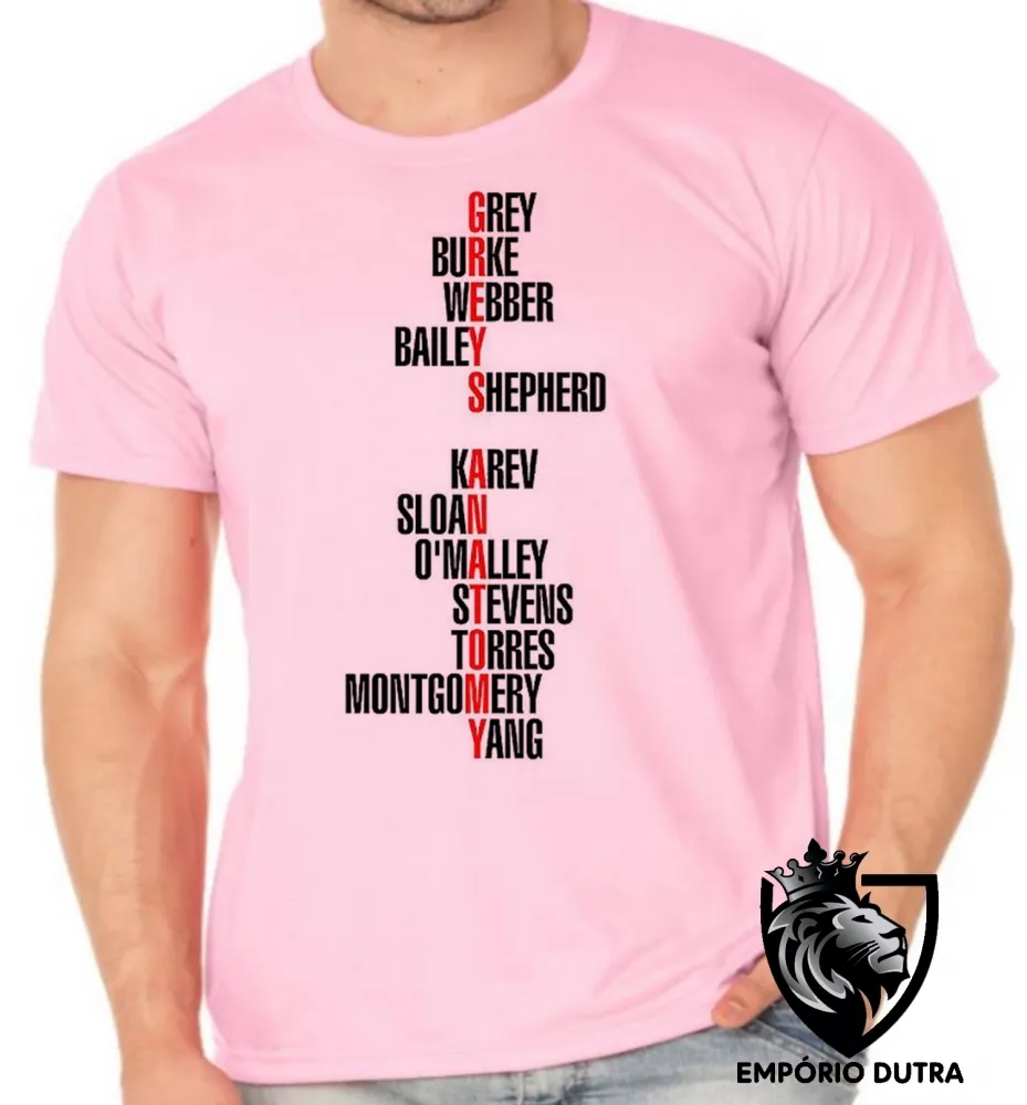 Camiseta adulto ou infantil Greys Anatomy seriado palavras