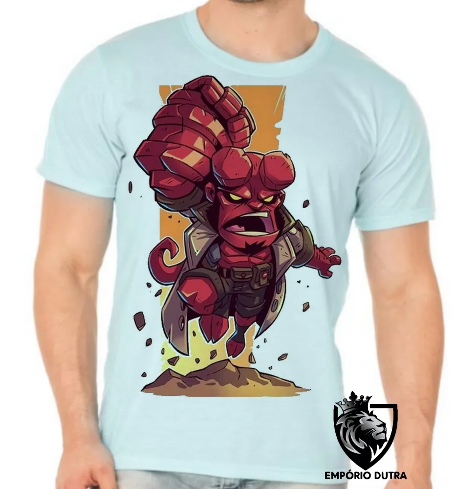 Camiseta adulto ou infantil HELLBOY super herói vermelho