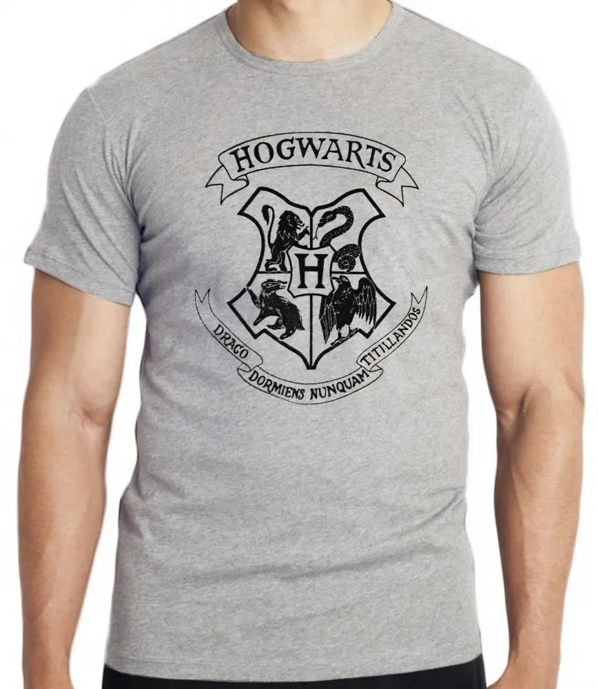 Camiseta adulto ou infantil Hogwarts harry potter símbolo preto