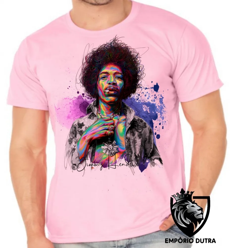 Camiseta adulto ou infantil Jimmy Hendrix colorido rock guitarra