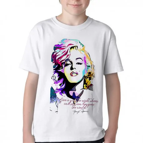 Camiseta adulto ou infantil Marilyn Monroe frase sapatos mundo