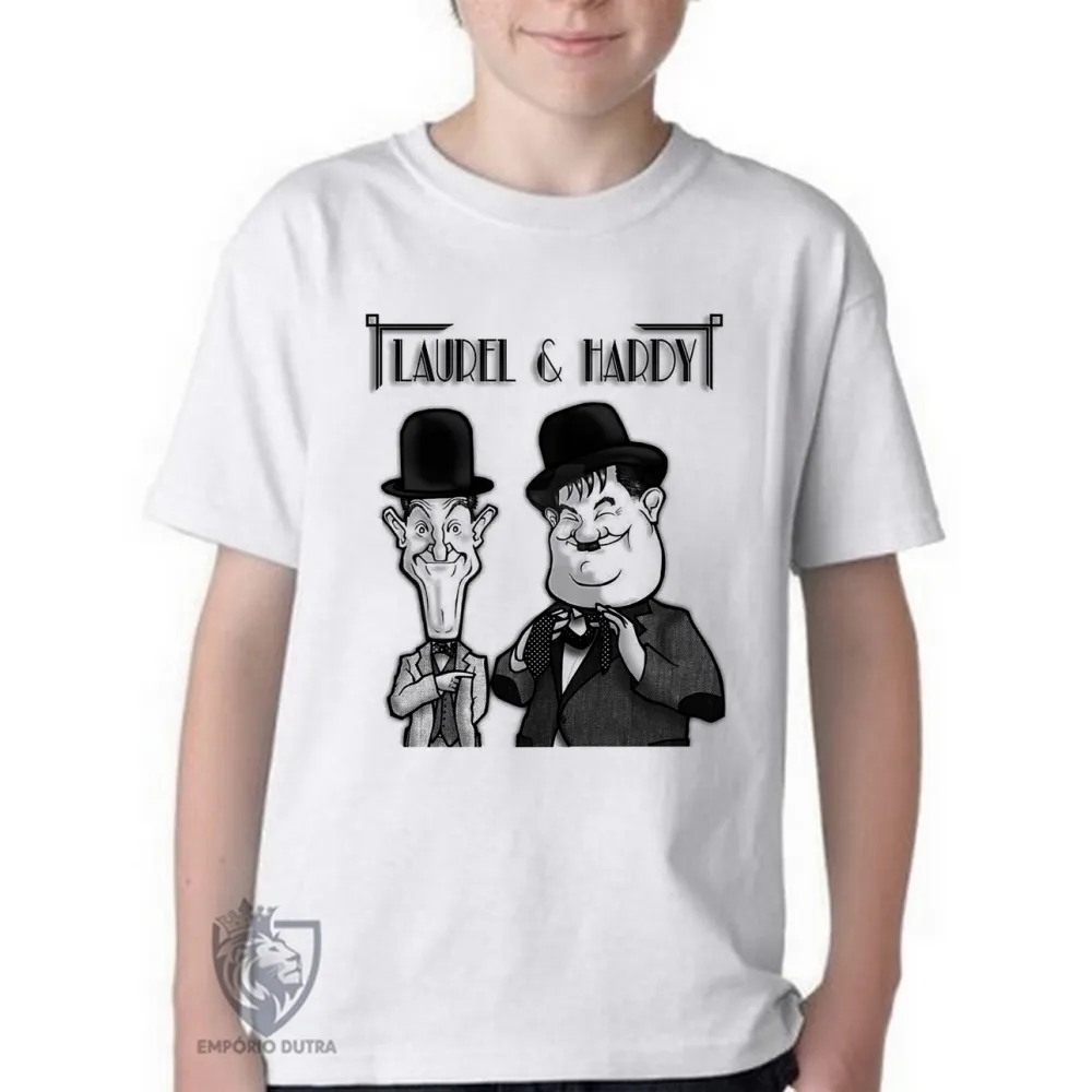 Camiseta adulto ou infantil o gordo e o magro laurel e hardy