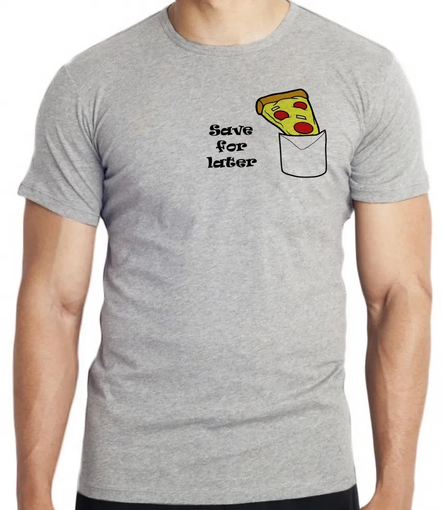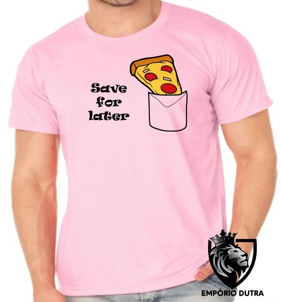 Camiseta adulto ou infantil Pizza Save for later bolso depois lanche