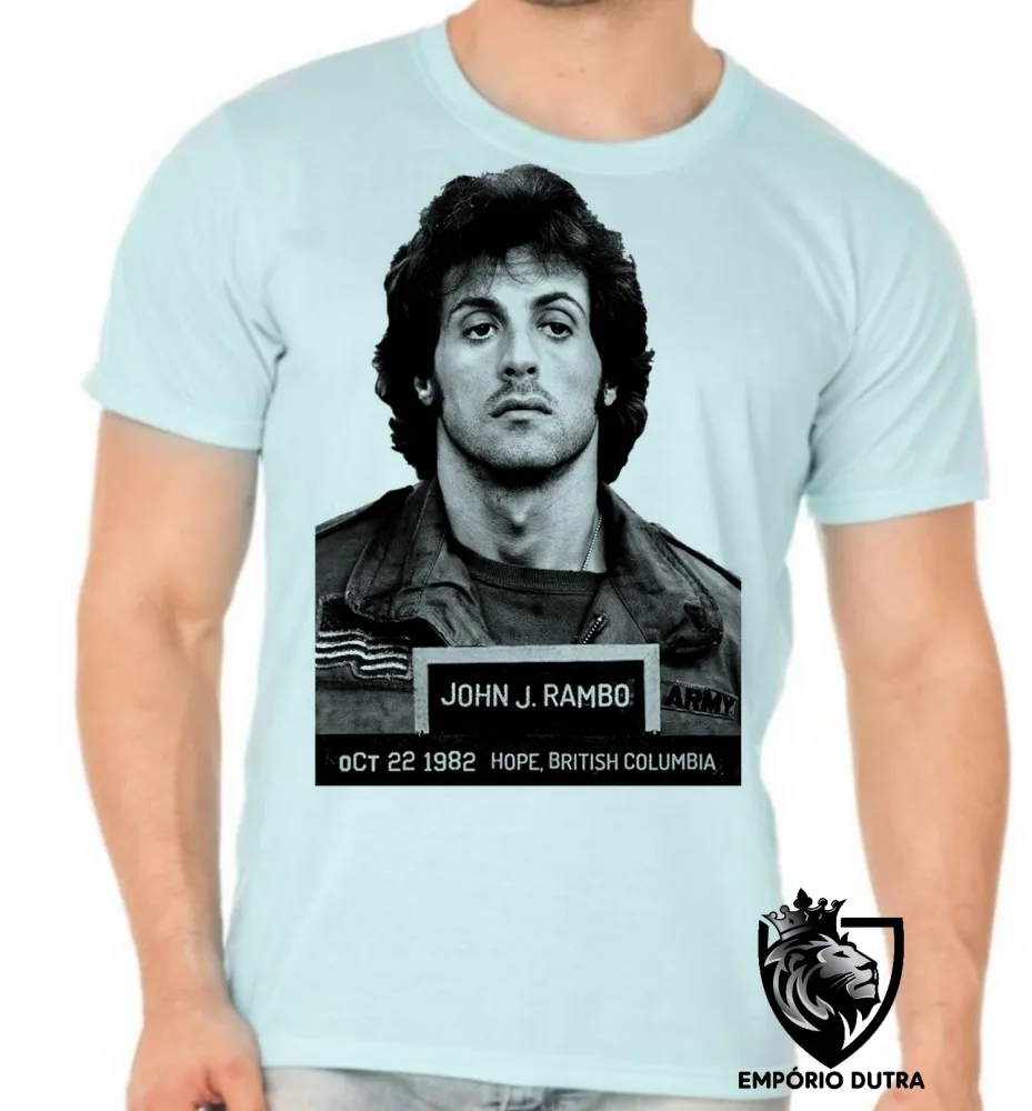 Camiseta adulto ou infantil Sylvester Stallone John Rambo preso 1985