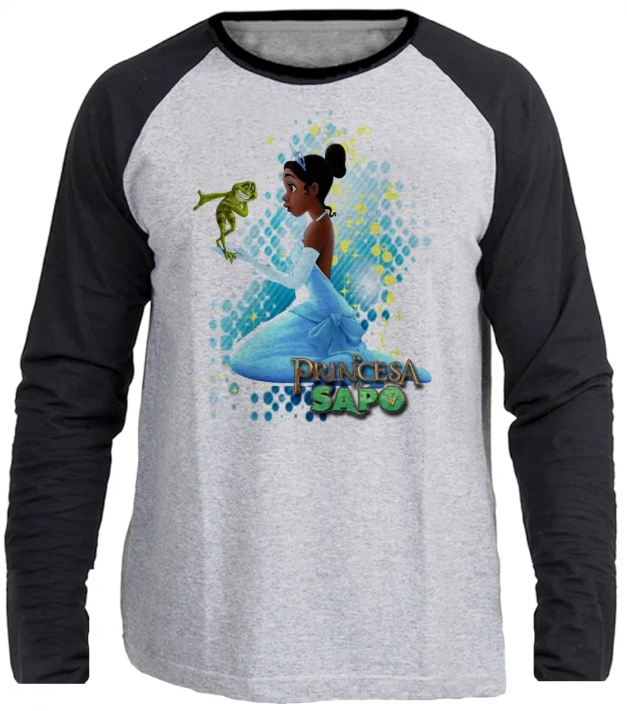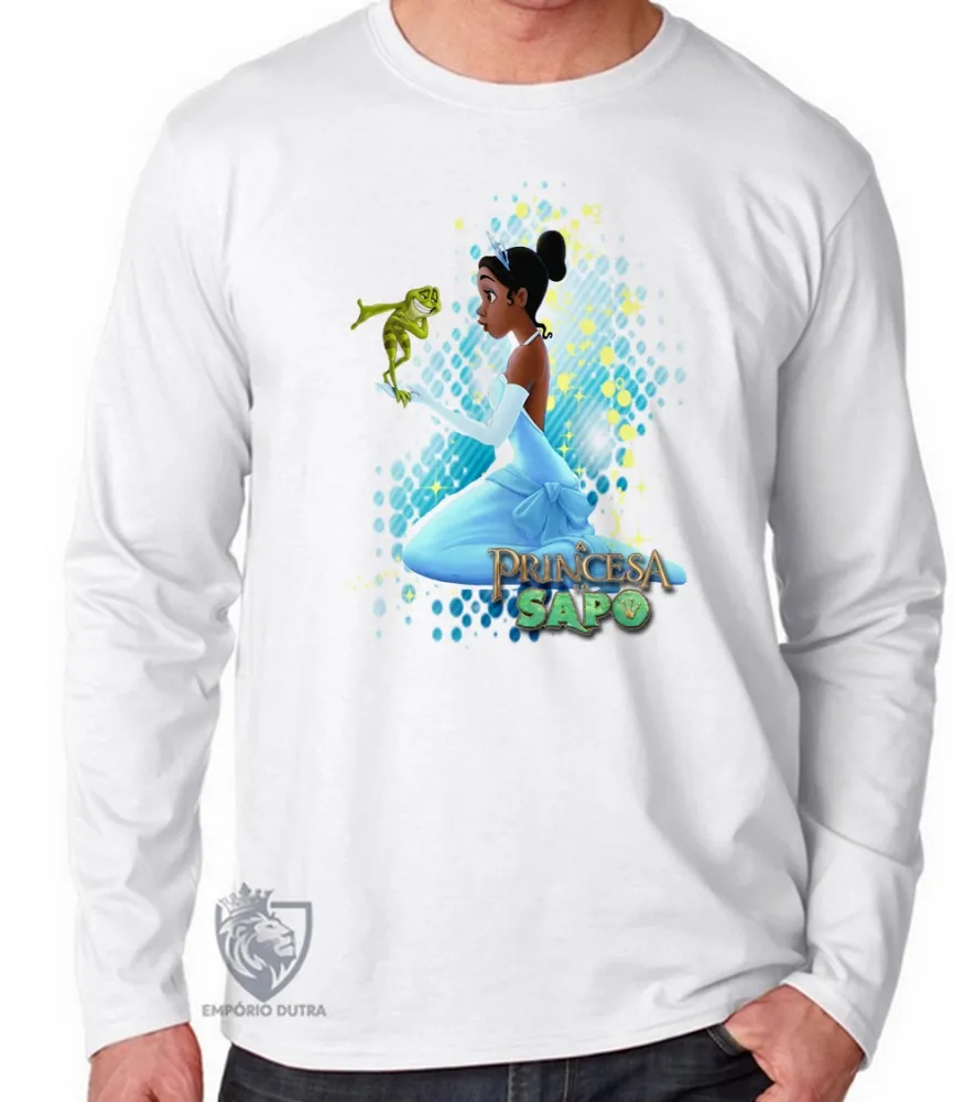 Camiseta manga longa Infantil ou Adulto A princesa e o Sapo vestido