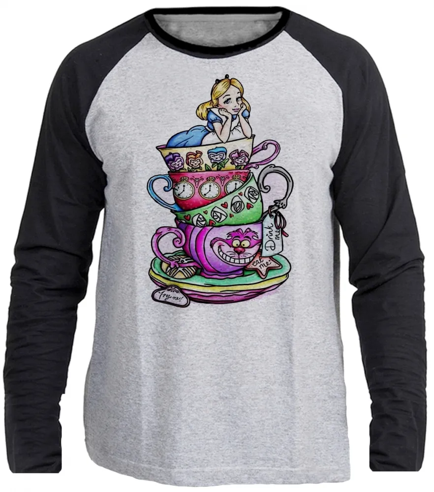 Camiseta manga longa Infantil ou Adulto Alice e gato no pais das maravilhas