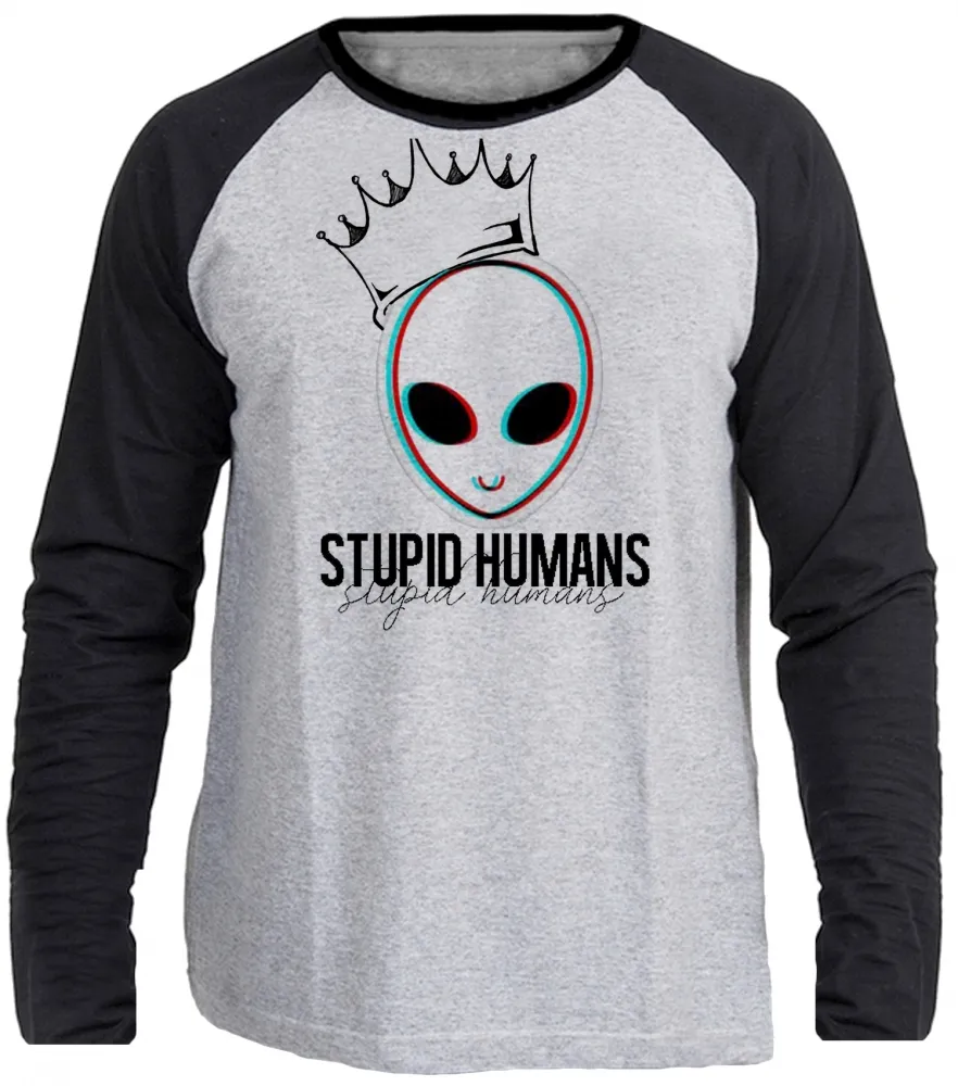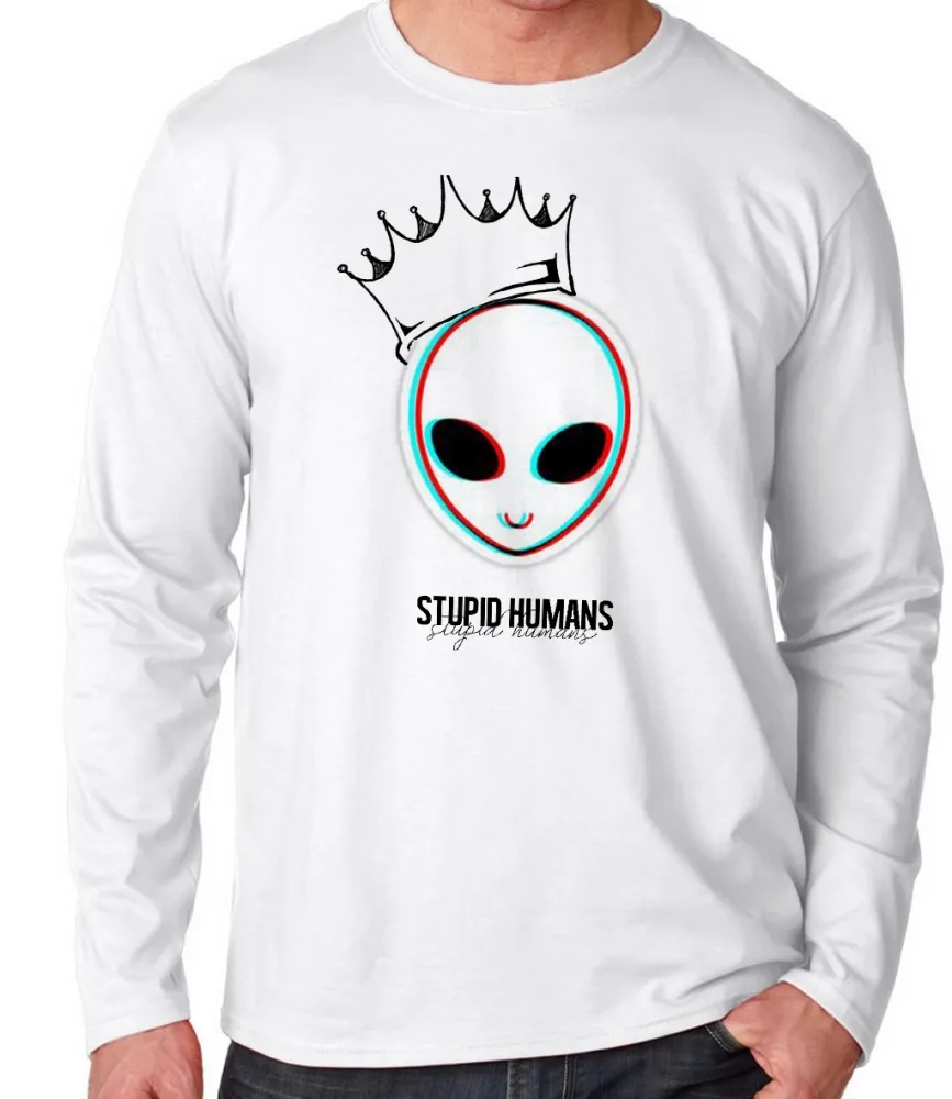 Camiseta manga longa Infantil ou Adulto Alien et stupid humans extraterrestre