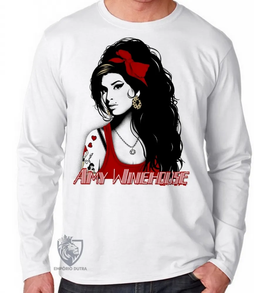 Camiseta manga longa Infantil ou Adulto Amy Winehouse vermelho rock