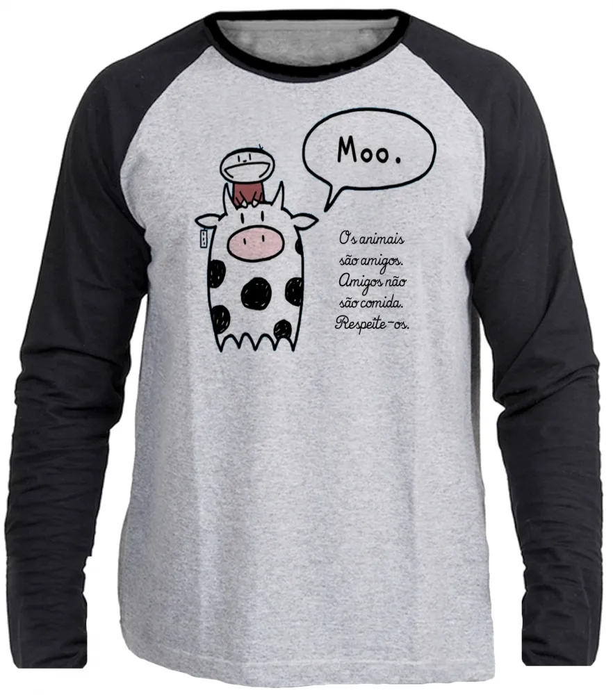 Camiseta manga longa Infantil ou Adulto Animais respeite-os vegatariano vegano