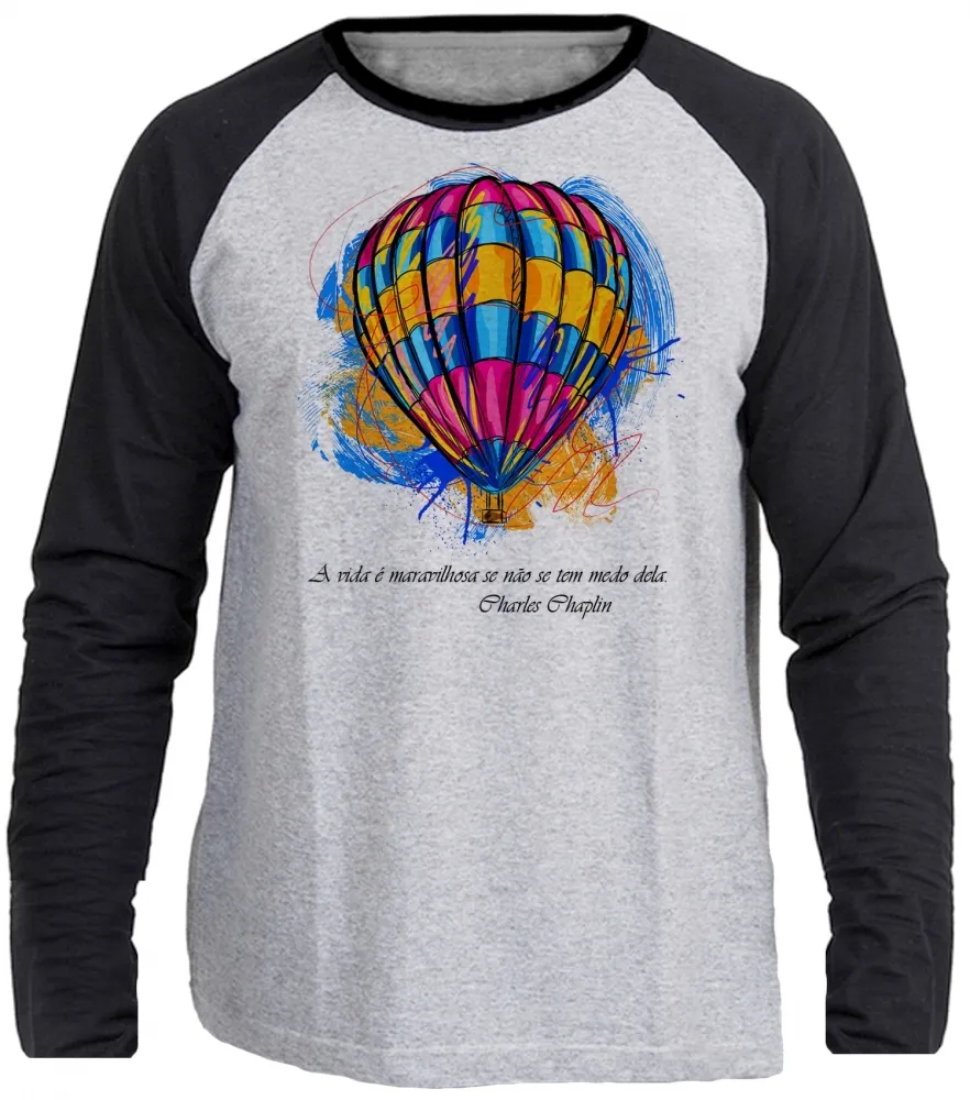 Camiseta manga longa Infantil ou Adulto balão frase Charles Chaplin