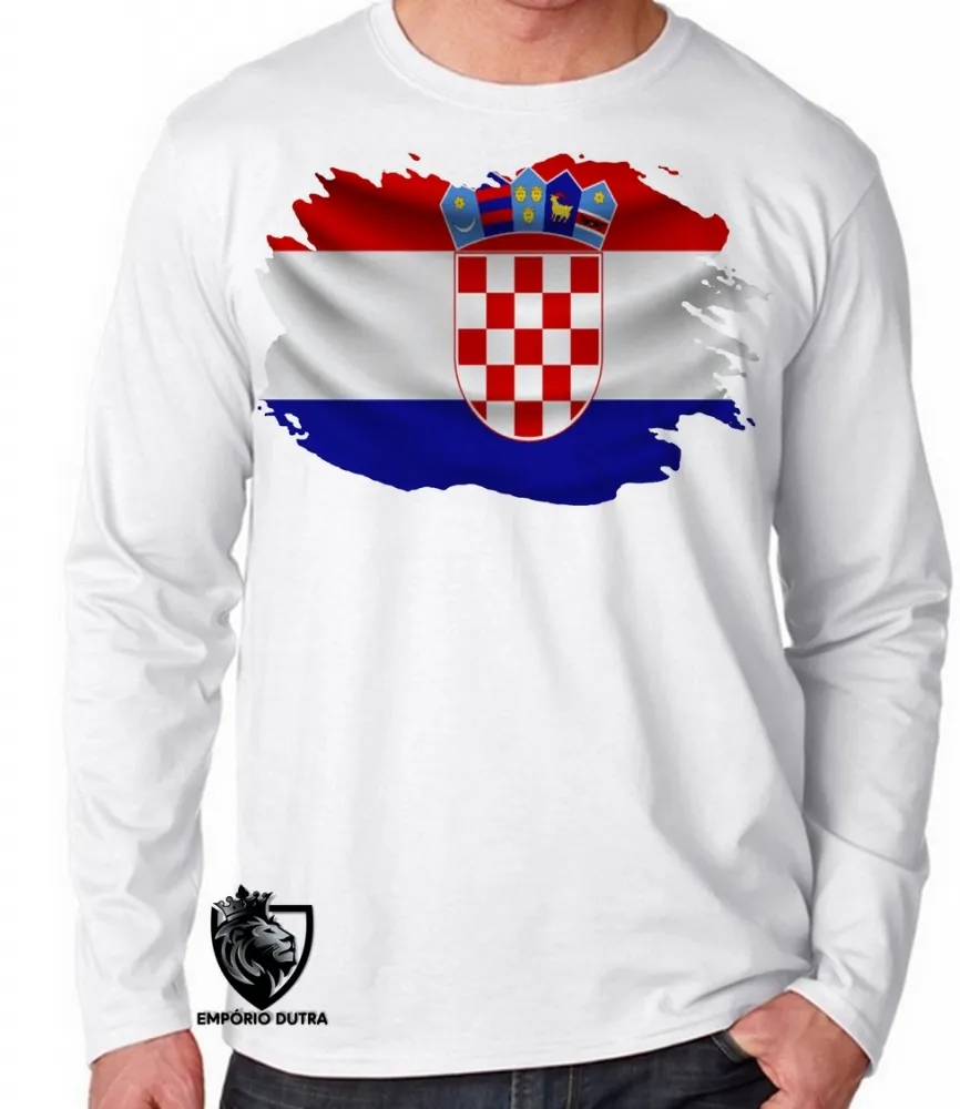 Camiseta manga longa Infantil ou Adulto Bandeira Croacia croatia