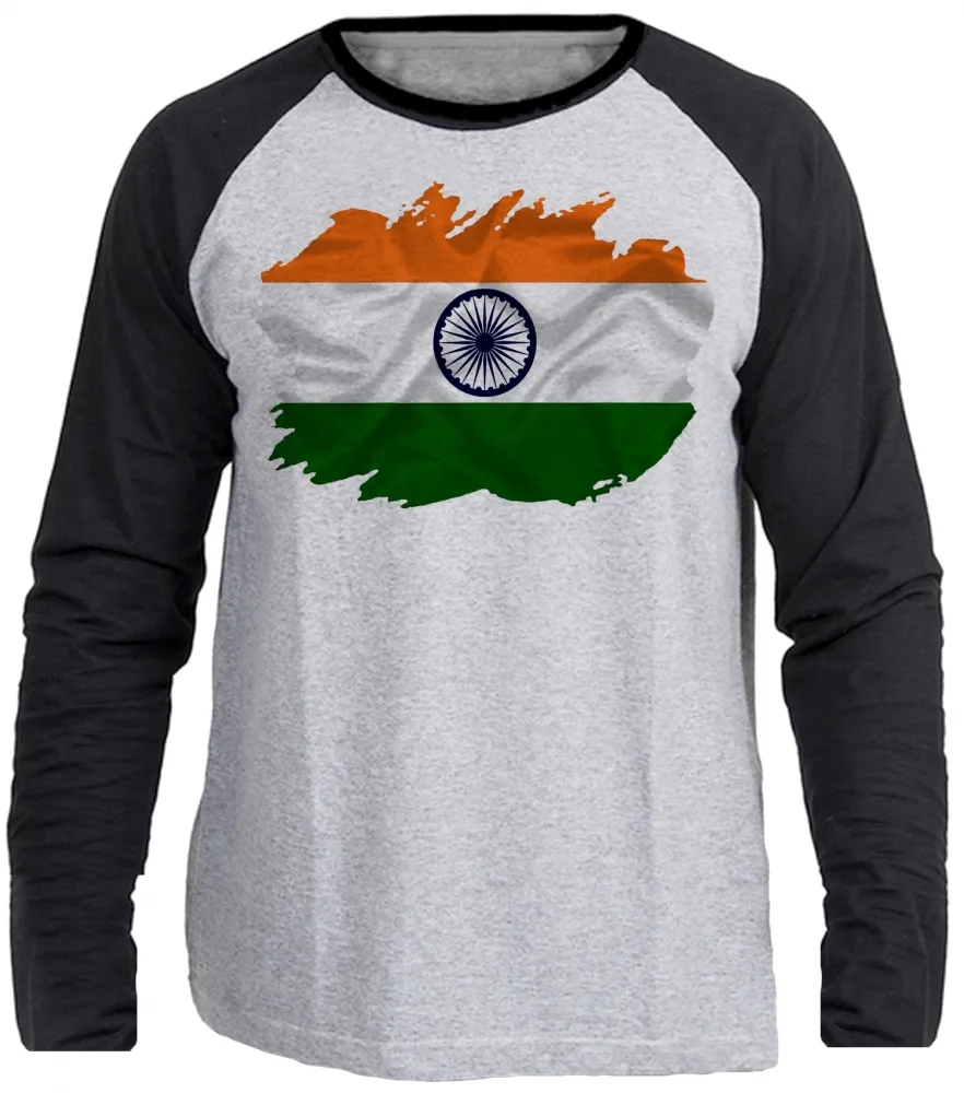 Camiseta manga longa Infantil ou Adulto Bandeira Índia indiano