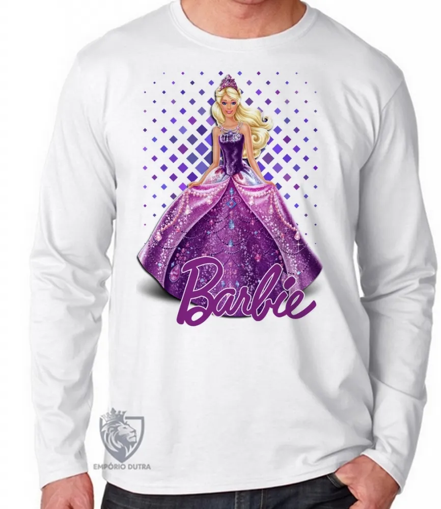 Camiseta manga longa Infantil ou Adulto Barbie roxa boneca
