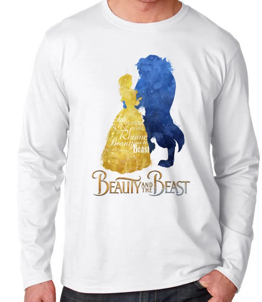 Camiseta manga longa Infantil ou Adulto Beauty and the Beast bela fera disney