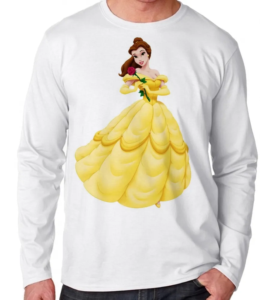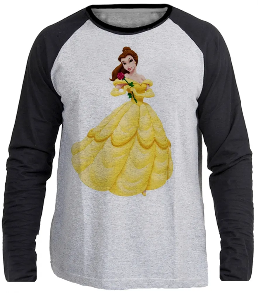Camiseta manga longa Infantil ou Adulto Bela ea fera princesa da Disney