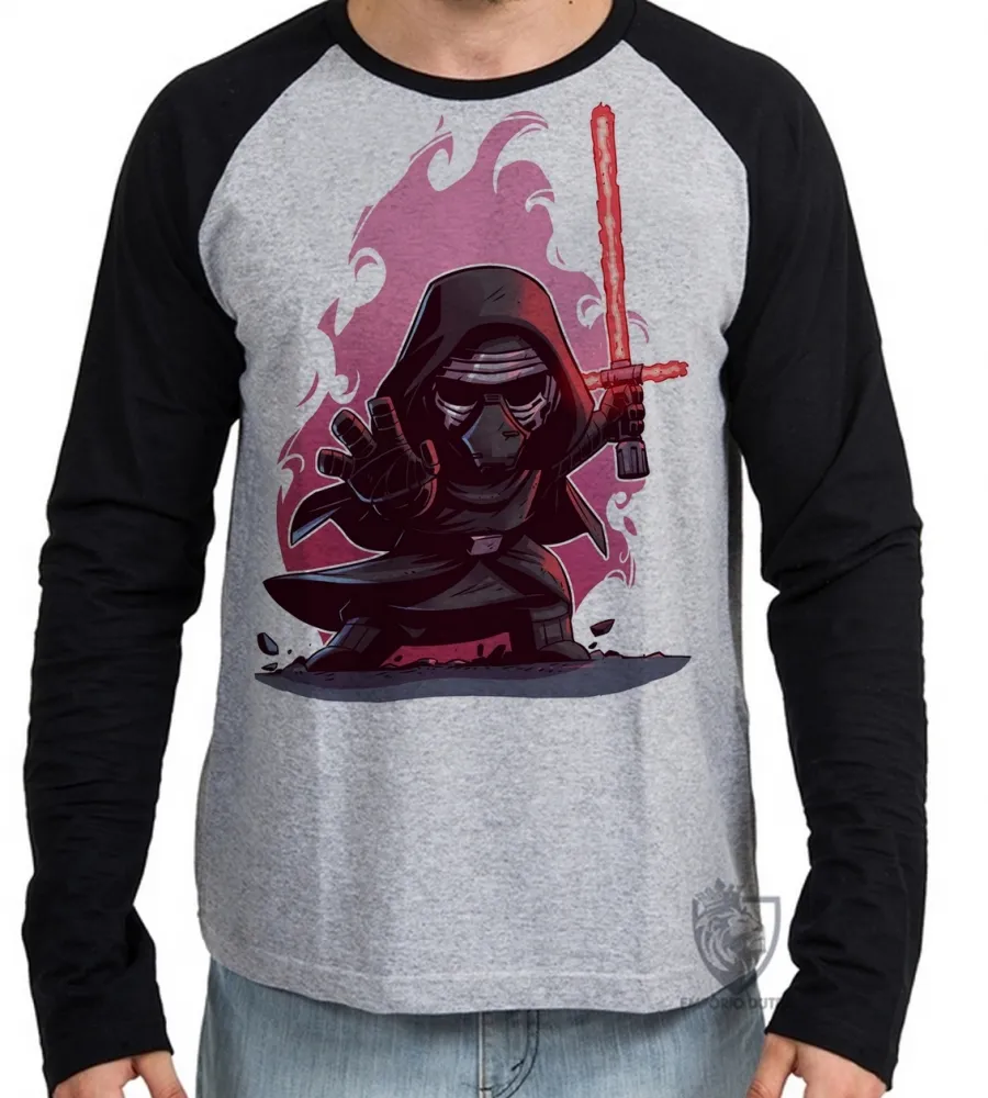 Camiseta manga longa Infantil ou Adulto Ben Solo vilão Kylo Ren star wars