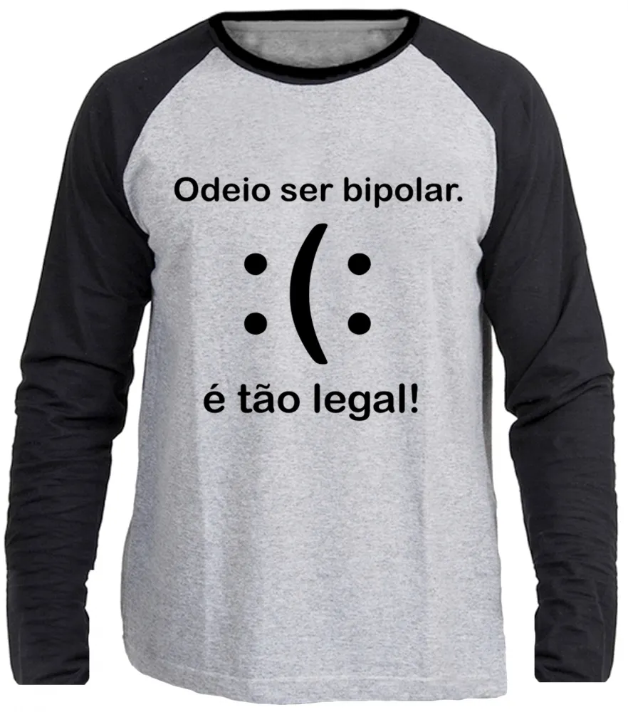 Camiseta manga longa Infantil ou Adulto Bipolar mau humor ranço
