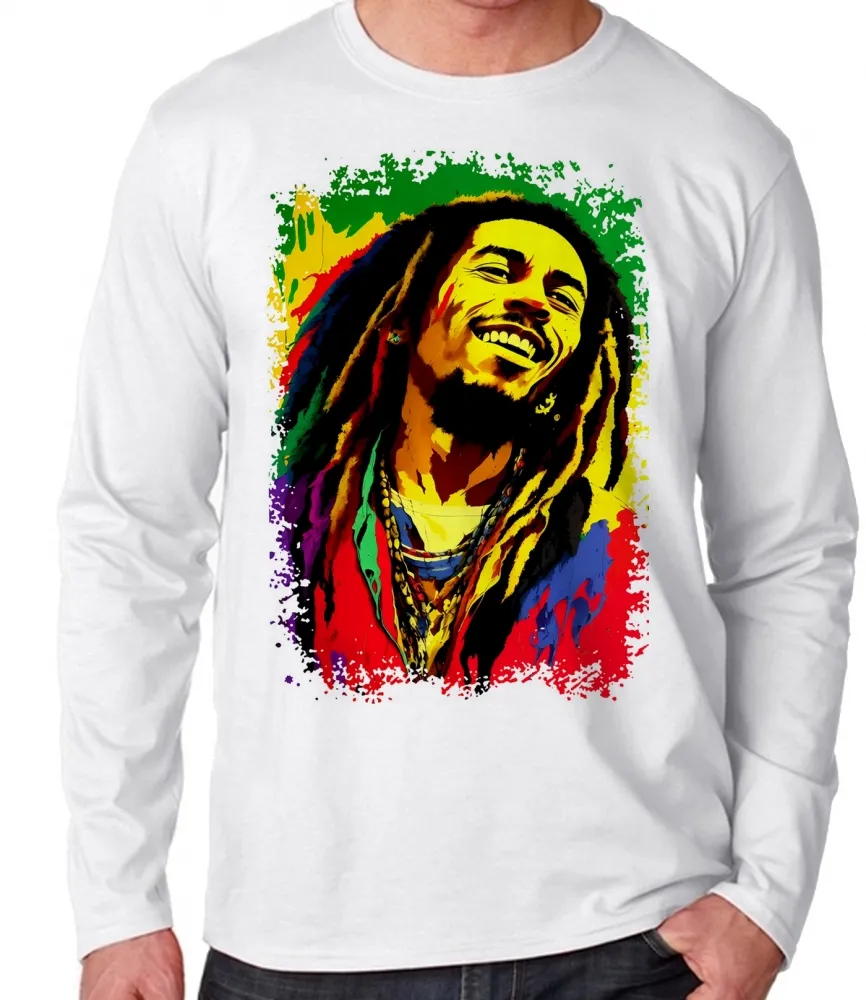 Camiseta manga longa Infantil ou Adulto Bob Marley colorido reggae