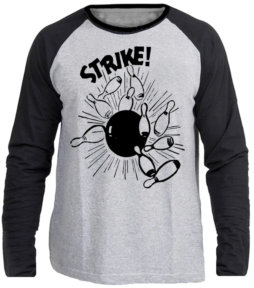 Camiseta manga longa Infantil ou Adulto boliche bolão Strike bowling