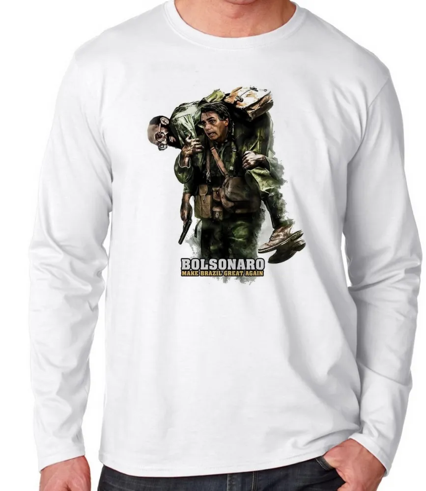 Camiseta manga longa Infantil ou Adulto bolsonaro resgate Eneas Carneiro