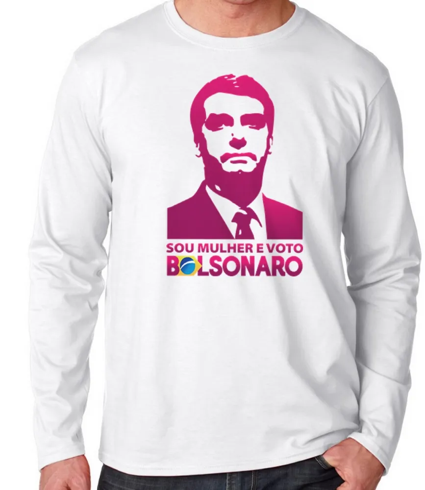 Camiseta manga longa Infantil ou Adulto Bolsonaro sou mulher e voto