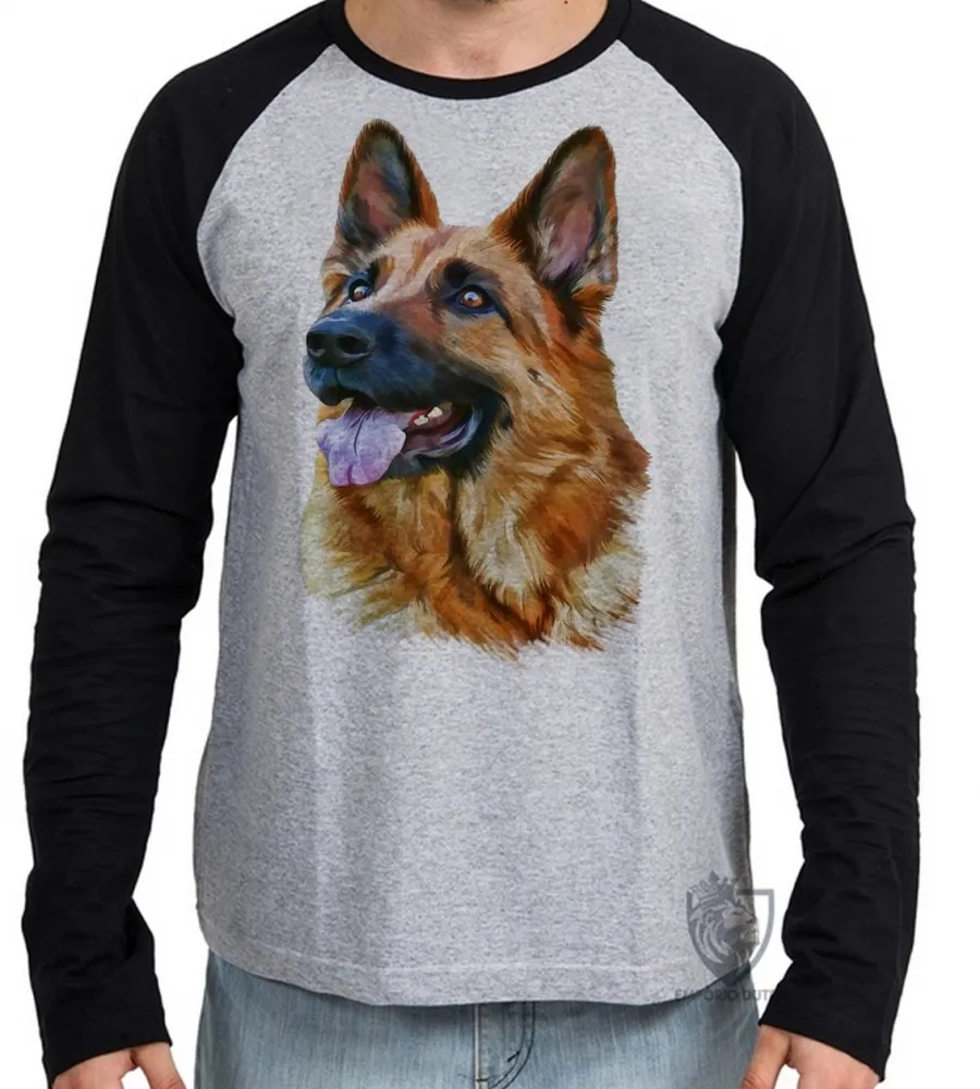 Camiseta manga longa Infantil ou Adulto cachorro cão dog pastor alemão german Shepherd