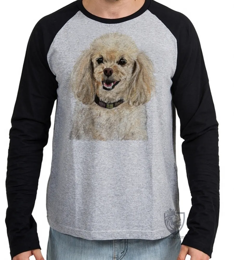 Camiseta manga longa Infantil ou Adulto cachorro cão dog poodle raça canina