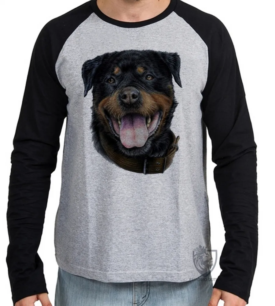 Camiseta manga longa Infantil ou Adulto cachorro cão dog rottweiler raça canina