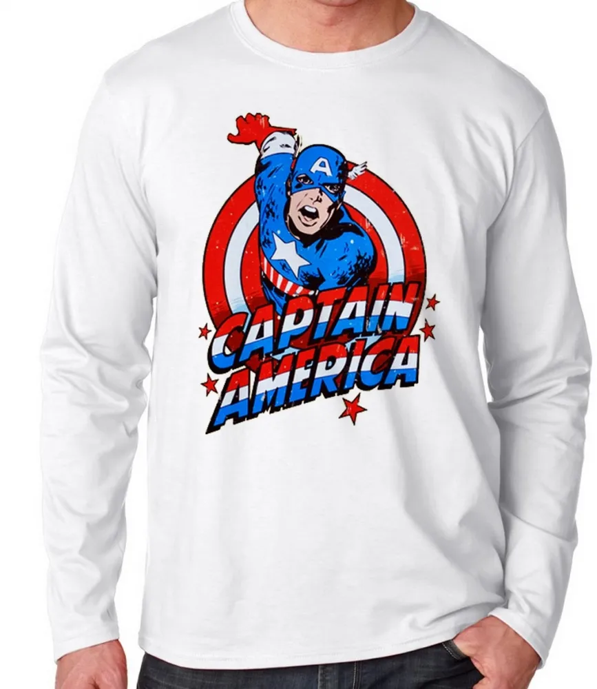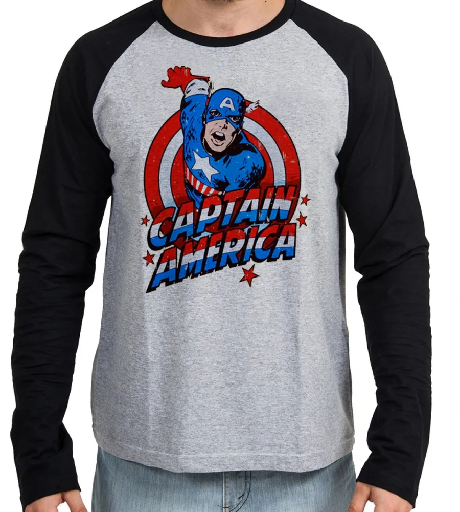 Camiseta manga longa Infantil ou Adulto Capitão américa cartoon marvel