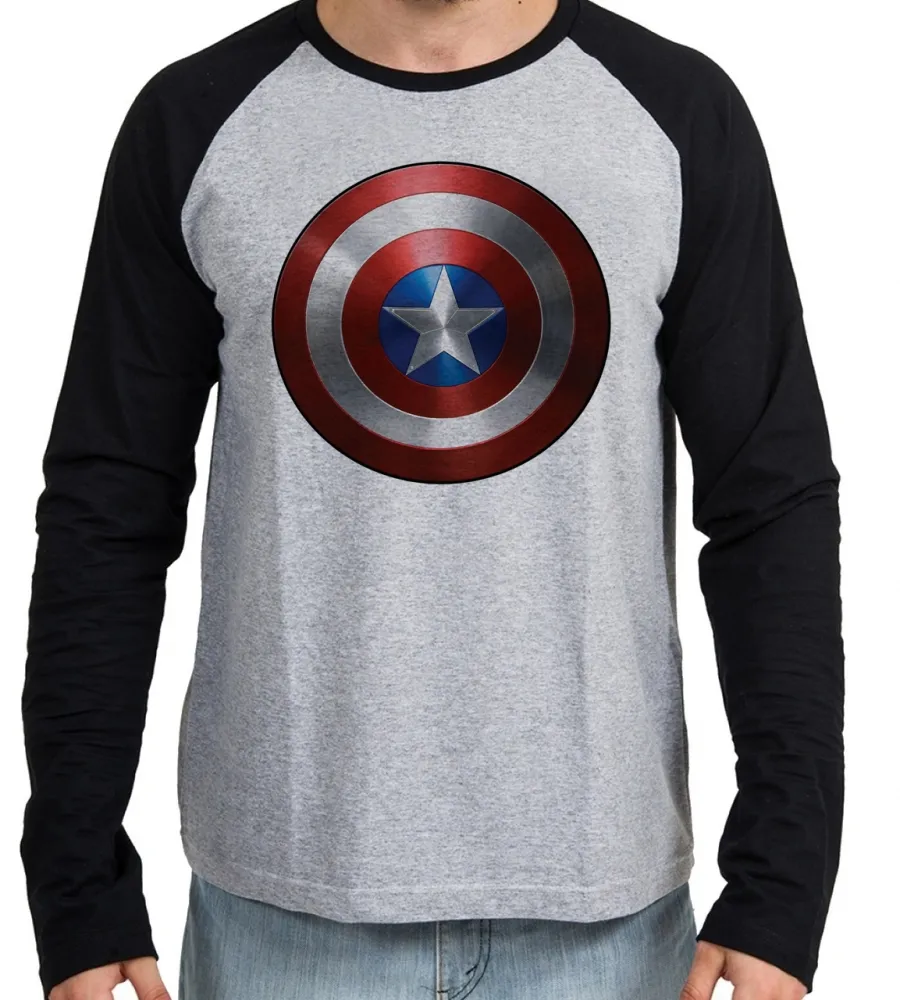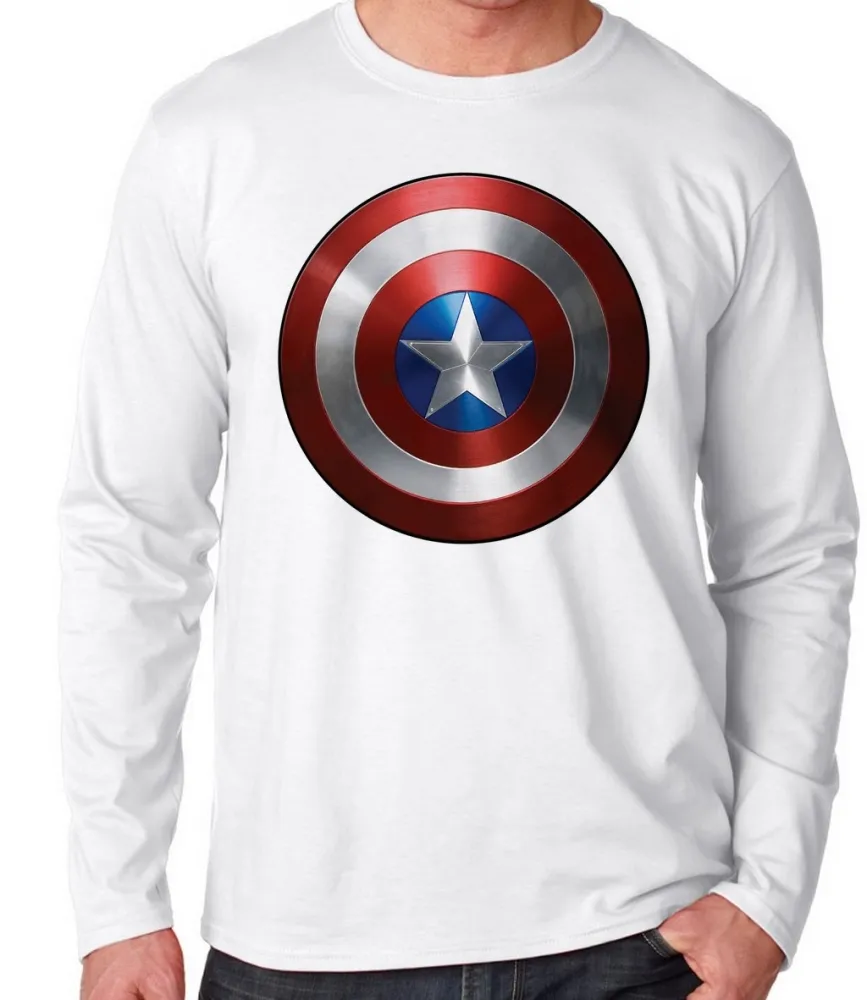 Camiseta manga longa Infantil ou Adulto capitao america escudo marvel