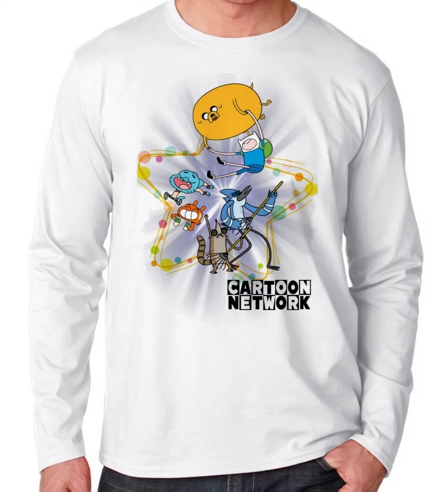 Camiseta manga longa Infantil ou Adulto Cartoon Network personagens desenho