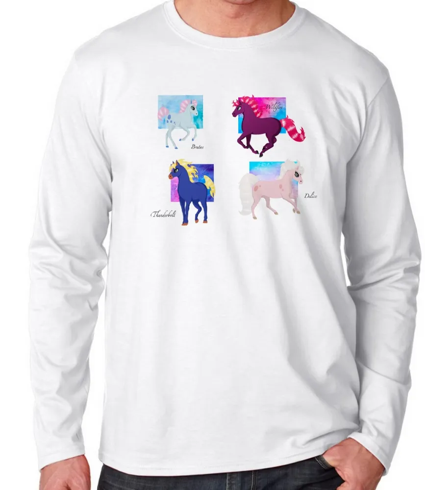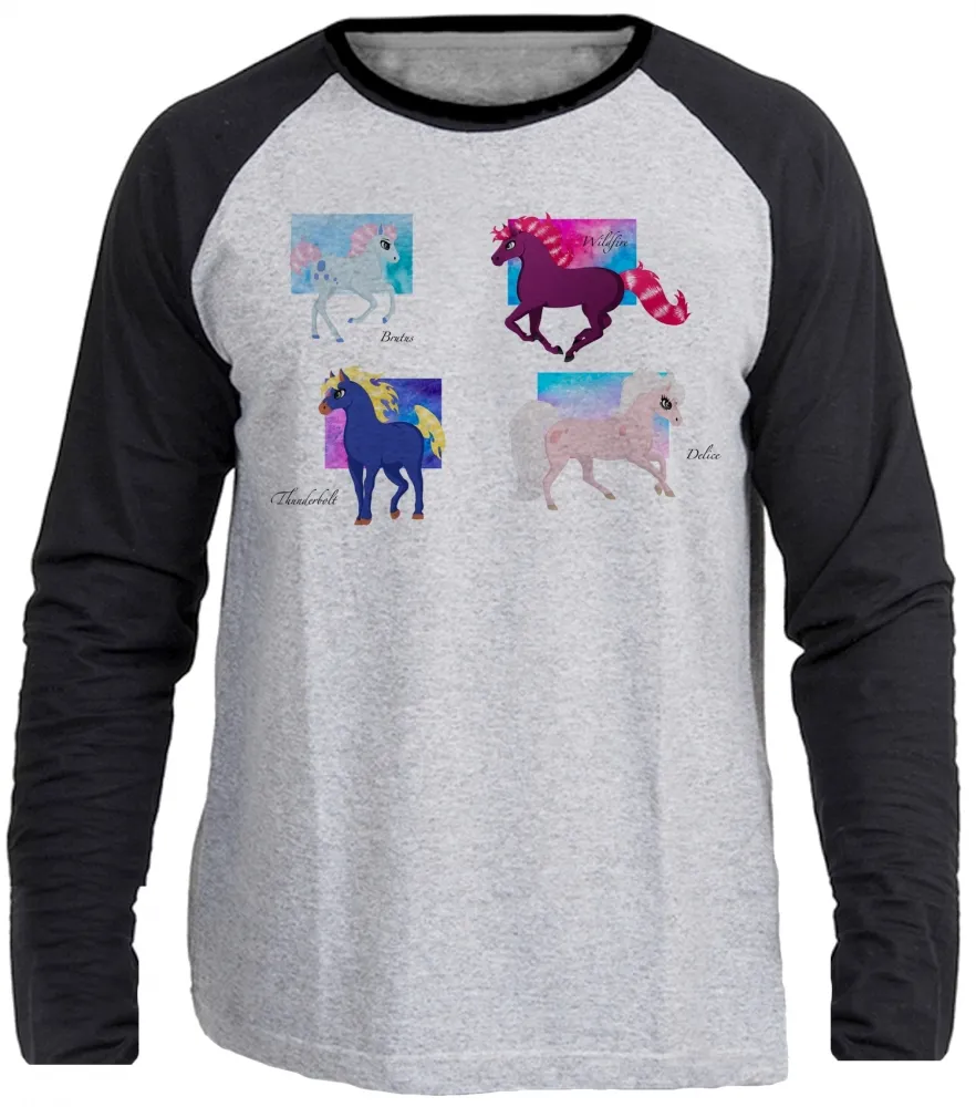 Camiseta manga longa Infantil ou Adulto cavalos cavalo de fogo princesa sarah