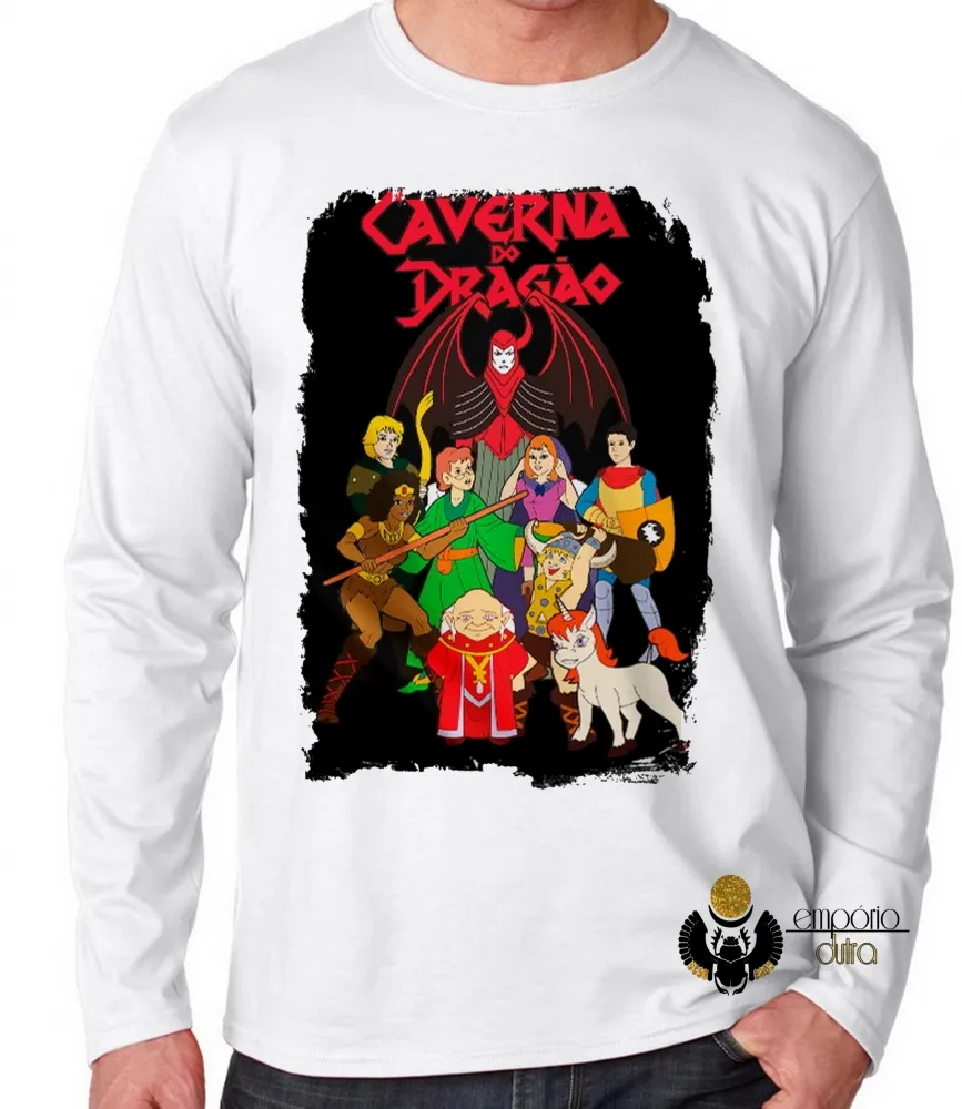 Camiseta manga longa Infantil ou Adulto Caverna do dragão mestre magos turma