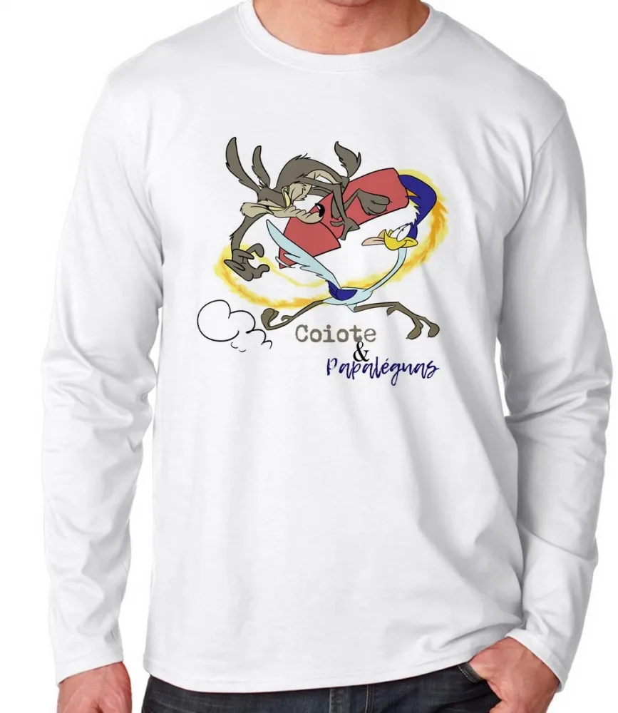Camiseta manga longa Infantil ou Adulto Coiote e Papaléguas foguete
