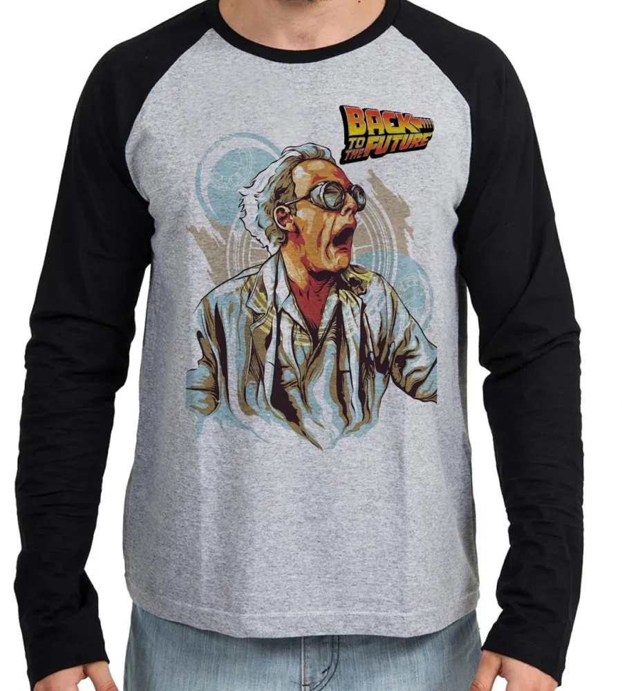 Camiseta manga longa Infantil ou Adulto De volta para o futuro Dr. Brown