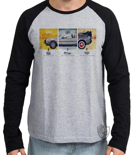 Camiseta manga longa Infantil ou Adulto DeLorean carro