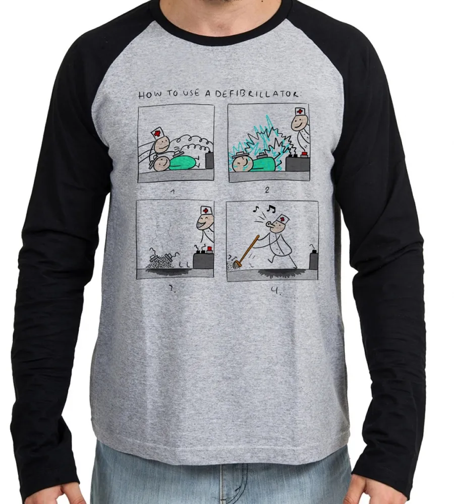 Camiseta manga longa Infantil ou Adulto desfribilador enfermeira medico
