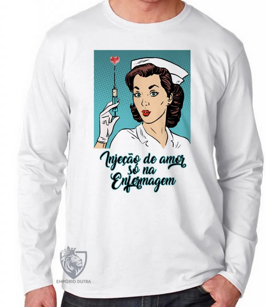 Camiseta manga longa Infantil ou Adulto Enfermagem injeção de amor Enfermeira