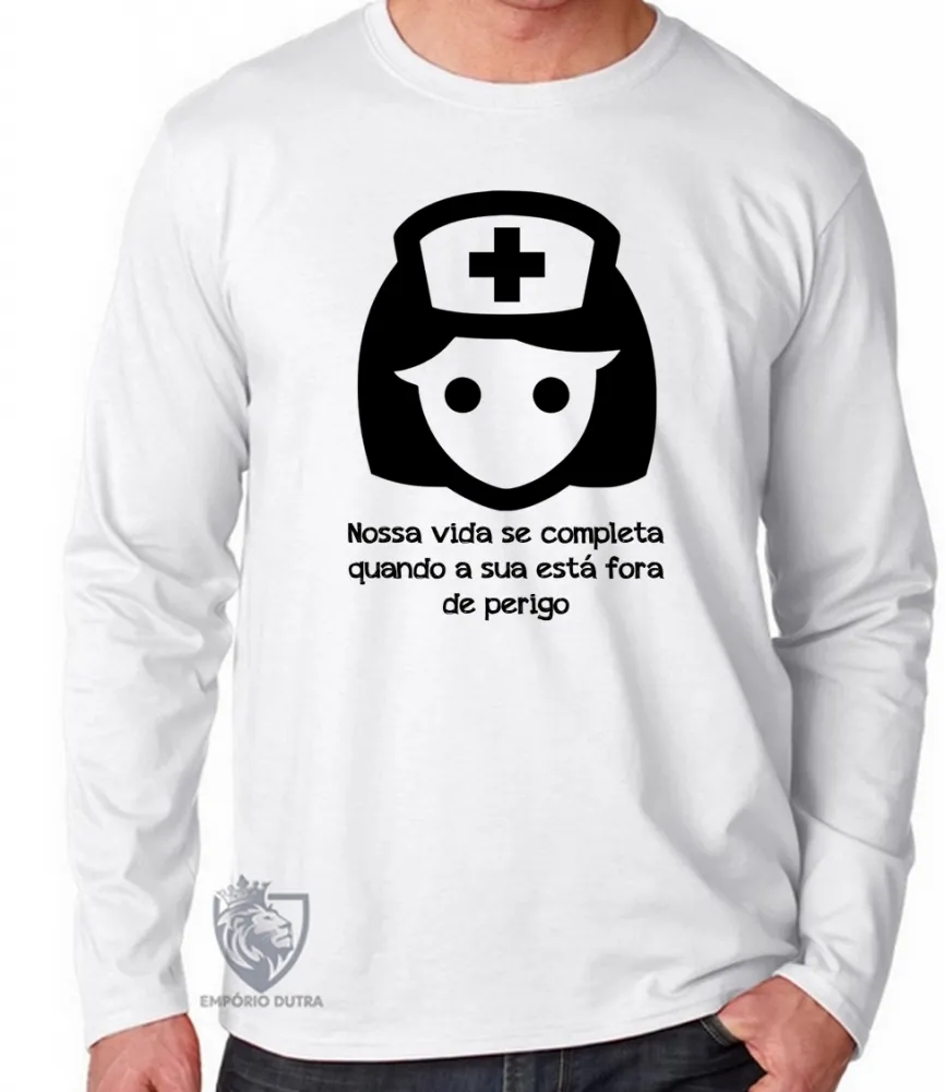 Camiseta manga longa Infantil ou Adulto Enfermagem nossa vida Enfermeira