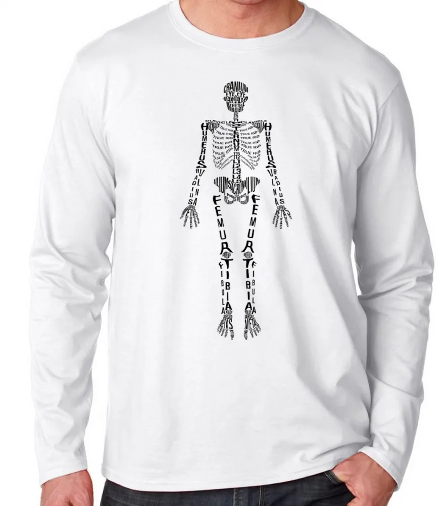 Camiseta manga longa Infantil ou Adulto esqueleto humano Enfermagem medicina