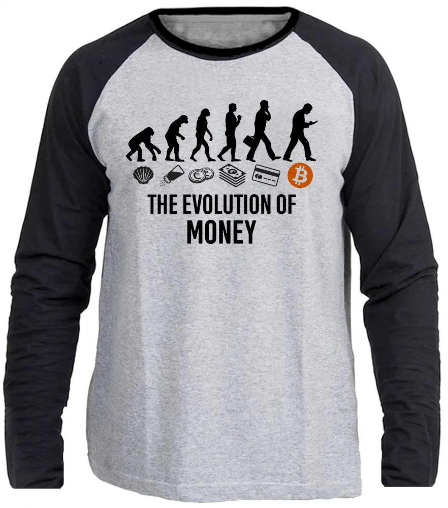 Camiseta manga longa Infantil ou Adulto Evolução Humana Bitcoin