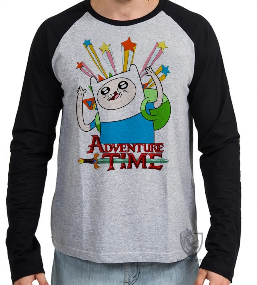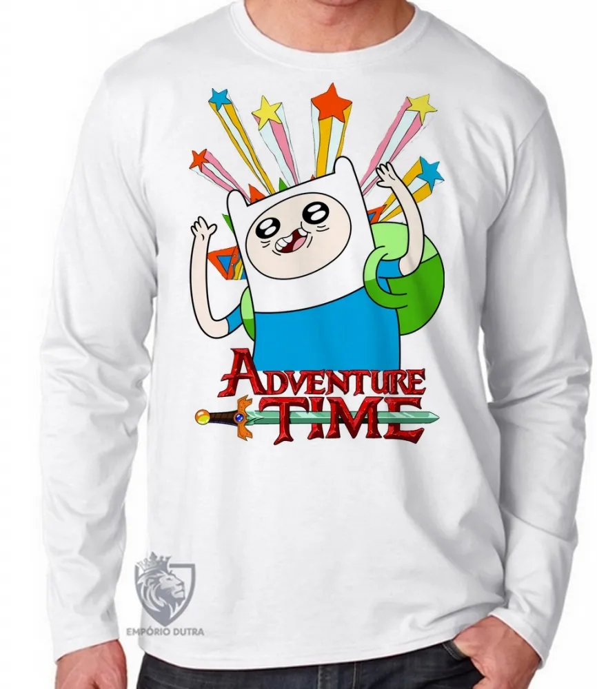 Camiseta manga longa Infantil ou Adulto Finn estrelas Hora da Aventura