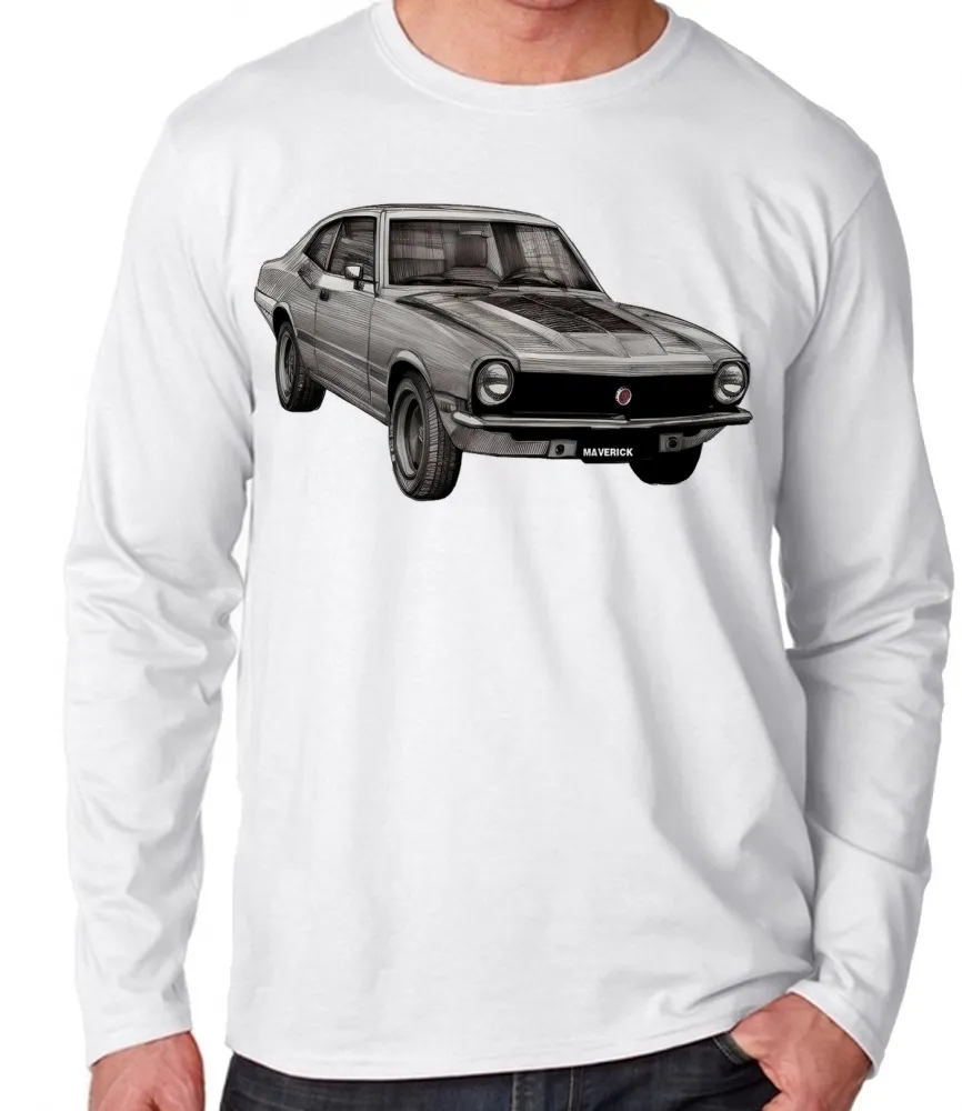 Camiseta manga longa Infantil ou Adulto Ford Maverick v8 carro antigo