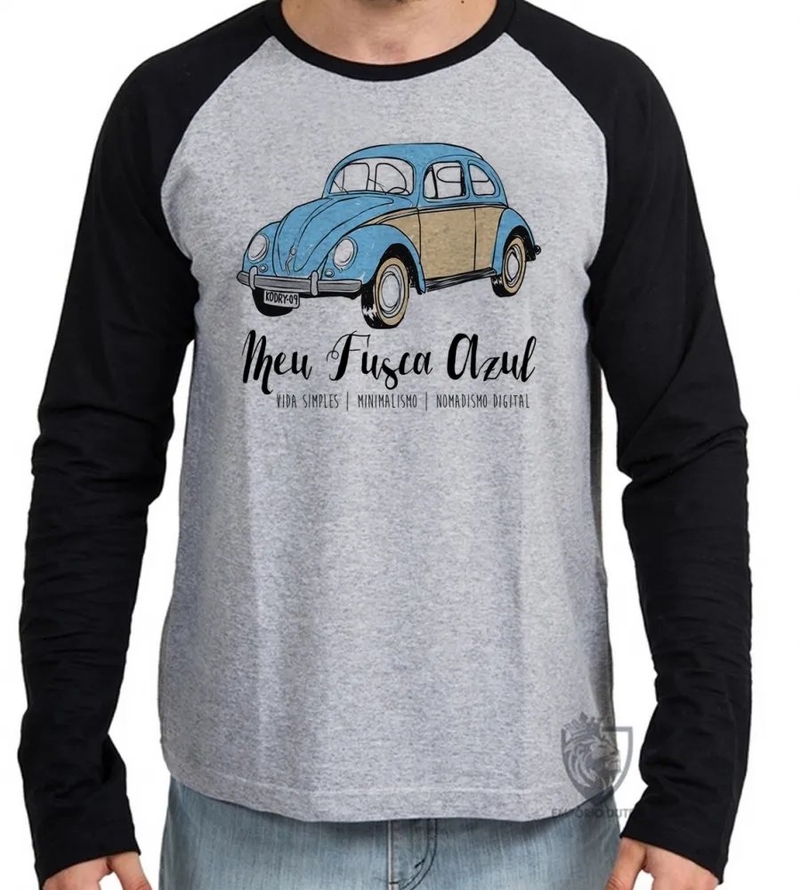 Camiseta manga longa Infantil ou Adulto Fusca Azul carro volkswagen fuca