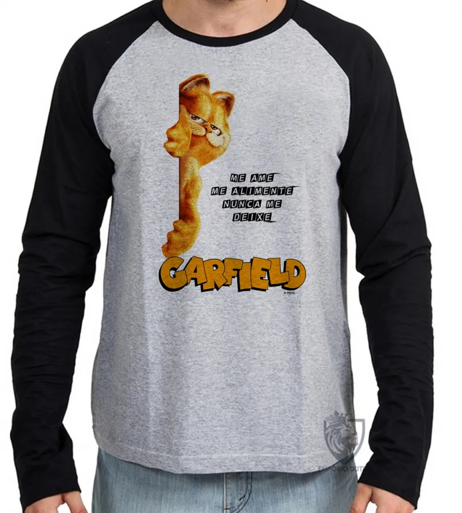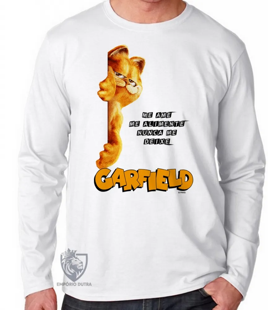 Camiseta manga longa Infantil ou Adulto Garfield me ame gato gordo