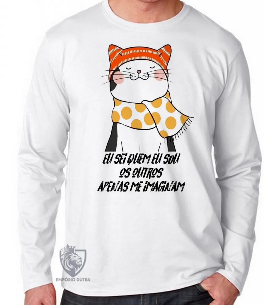 Camiseta manga longa Infantil ou Adulto Gatinho eu sei quem eu sou gato felino