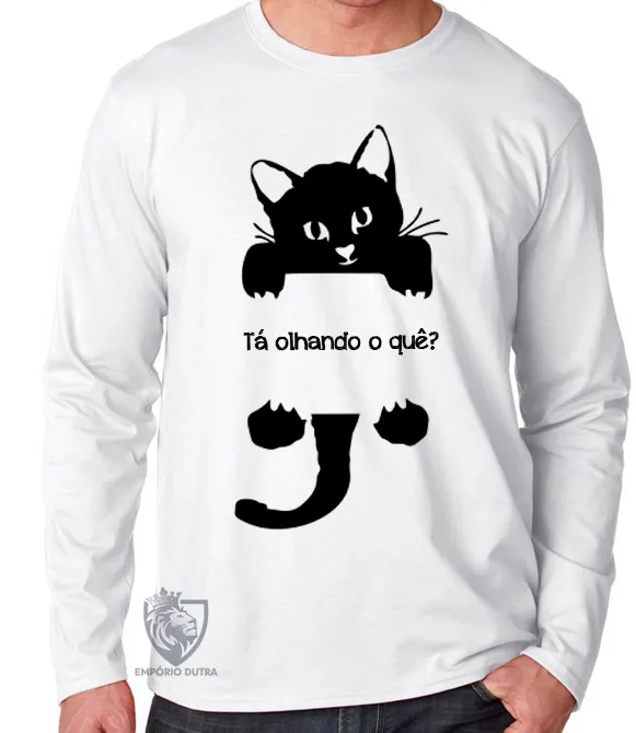 Camiseta manga longa Infantil ou Adulto Gato Tá olhando o quê