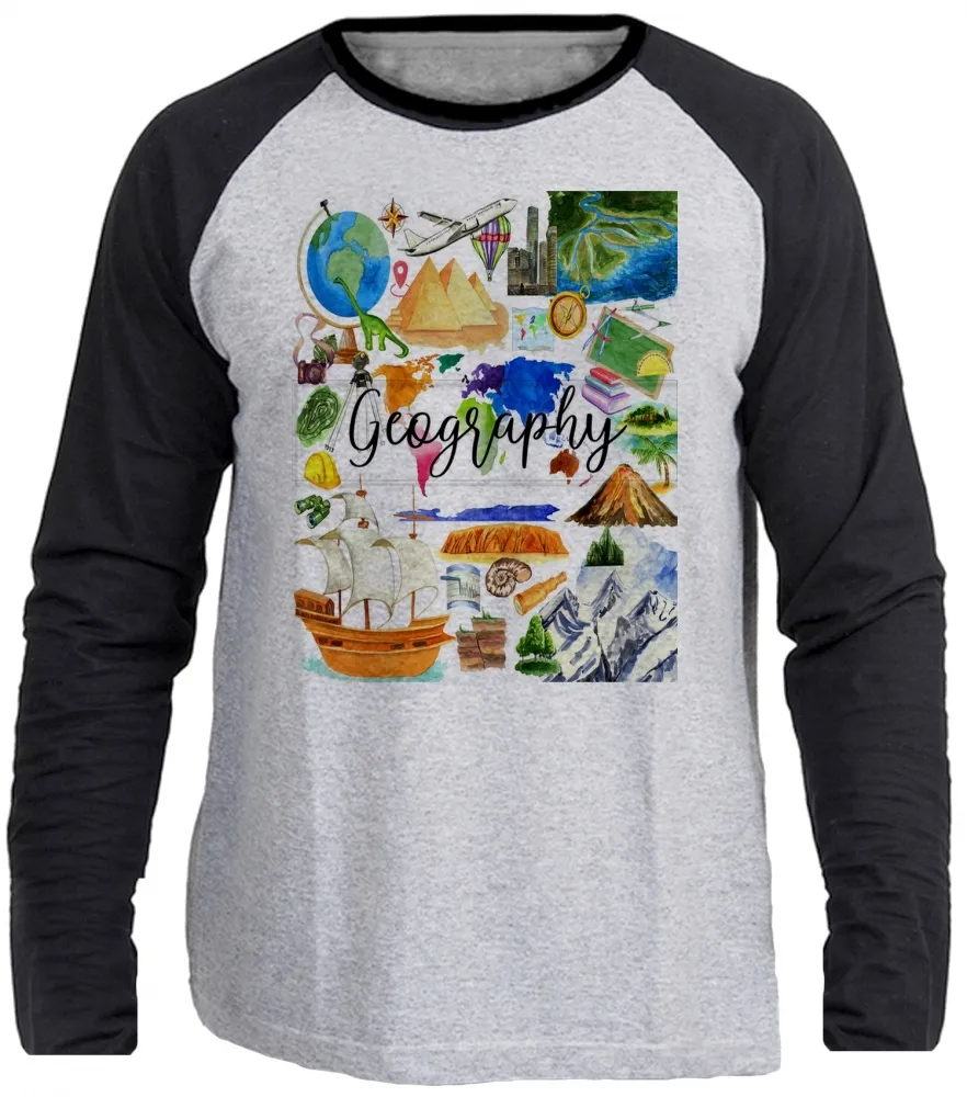 Camiseta manga longa Infantil ou Adulto Geografia professor estudante