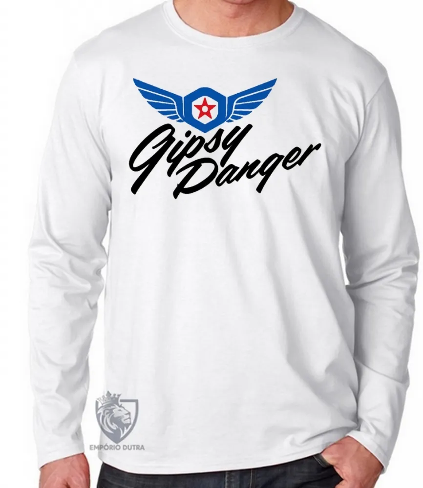Camiseta manga longa Infantil ou Adulto Gipsy Danger robo circulo de fogo