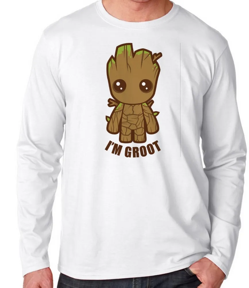 Camiseta manga longa Infantil ou Adulto Groot Bebê guardiões galaxia marvel